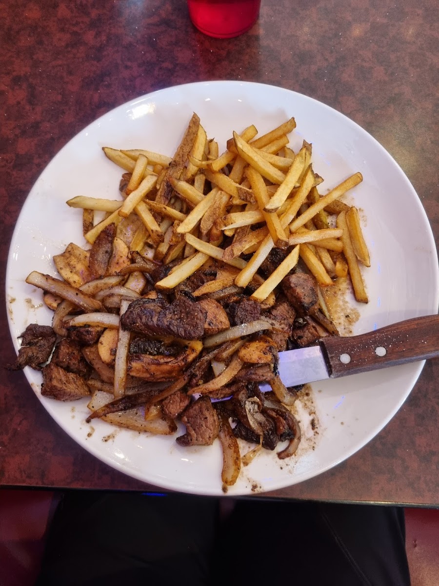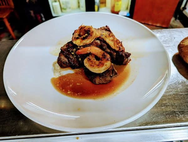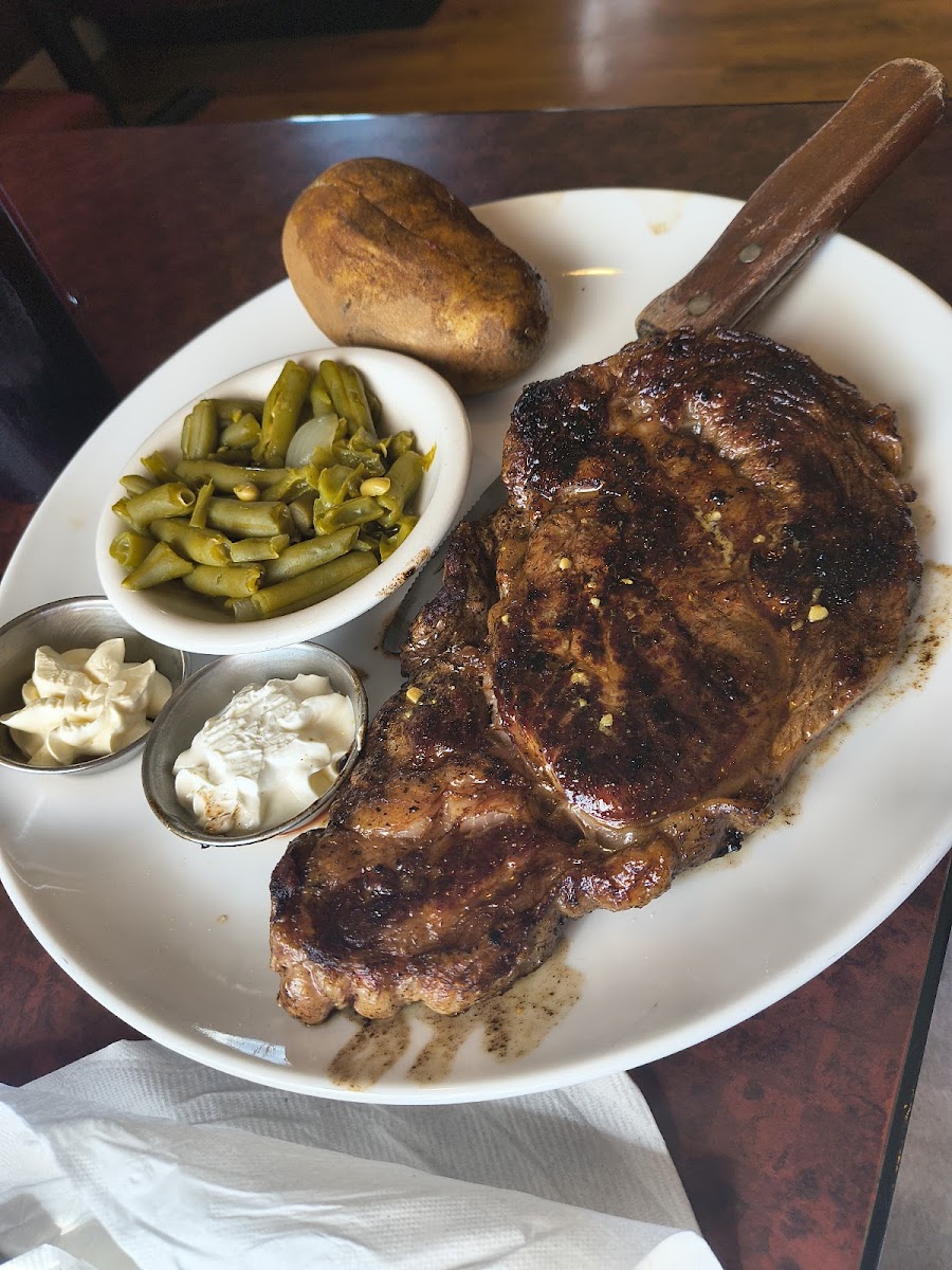 This unassuming place punches above its weight. The 12 oz prime rib special very good; I'm from Wisco where this is a supperclub staple. You get two sides. I ordered the cabbage which was an unusual but satisfying offering. Waitress misunderstood my inquiry about green beans being fresh, they were canned. When she came back to check on me, we subbed it out for a salad. Fresh mushroom and onion add on worth it. The house wine not very good. Opt for a beer or cocktail. Owner came to check on how I enjoyed my meal which is always appreciated.